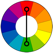 The color wheel: each color has a complementary color that is their opposite, in this case, green and red.
