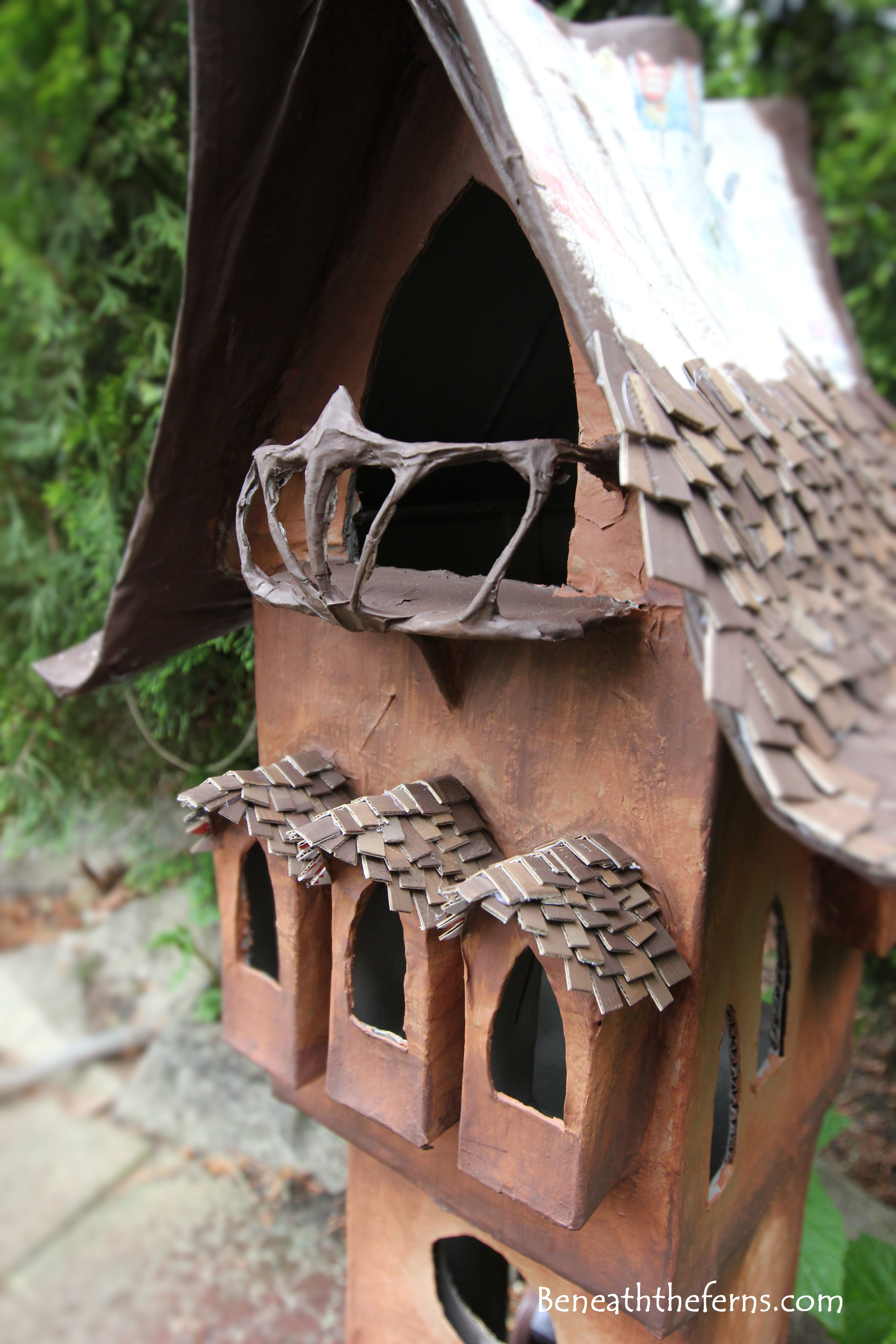 Thanks Connie! I used cardboard for the shingles, and glued them on with a hot glue gun. Next time I’d like to use real wood shingles that could hold up better if they were outside. π
