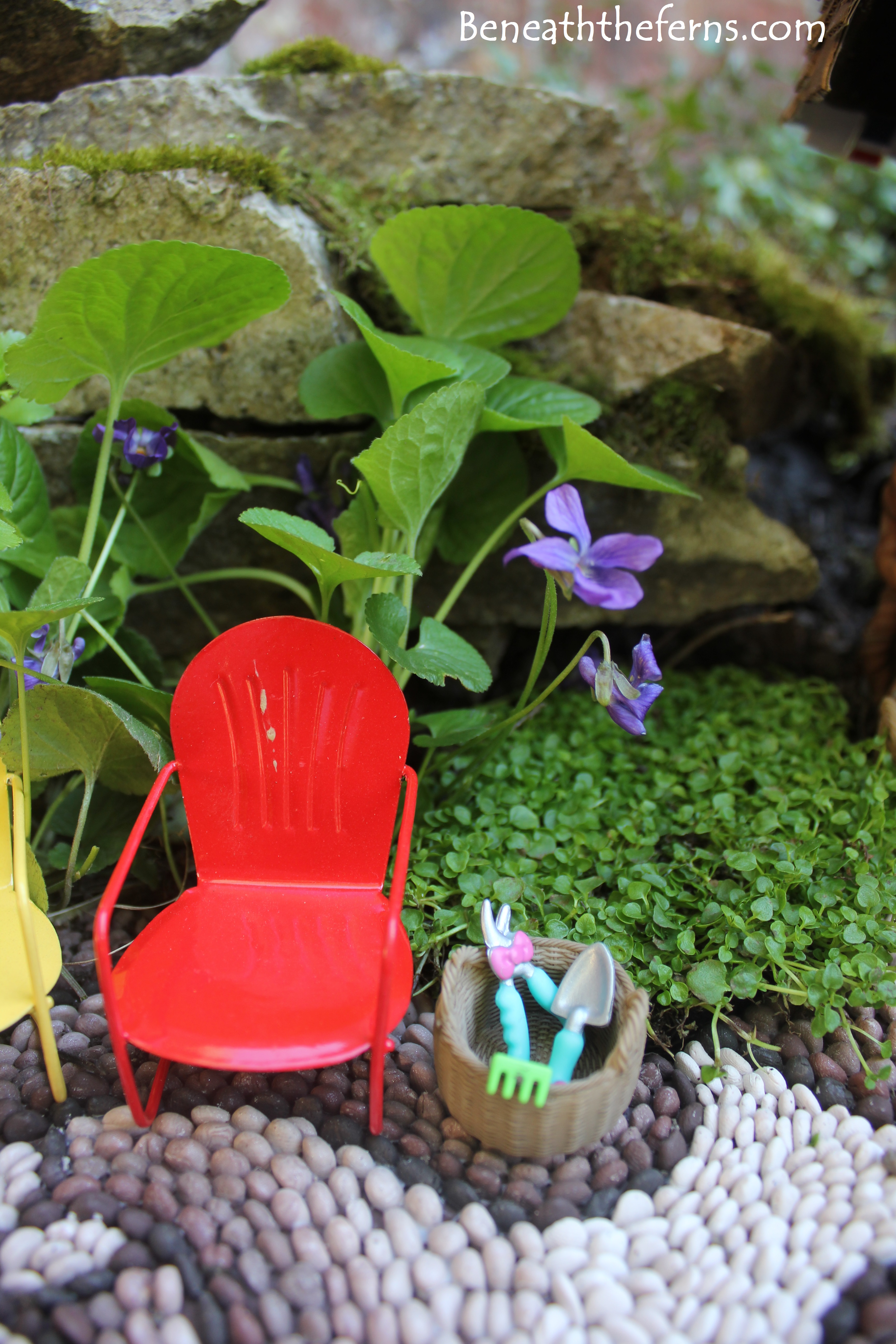 Now if your fairies are short on time, and want to create their campsite quickly, this sweet little diorama will turn any miniature garden into a campsite in a flash. It was artfully created by the daughter of the shop owner at The Enchanted Acorn, and looks so sweet! This talented young artist has a good eye for detail!