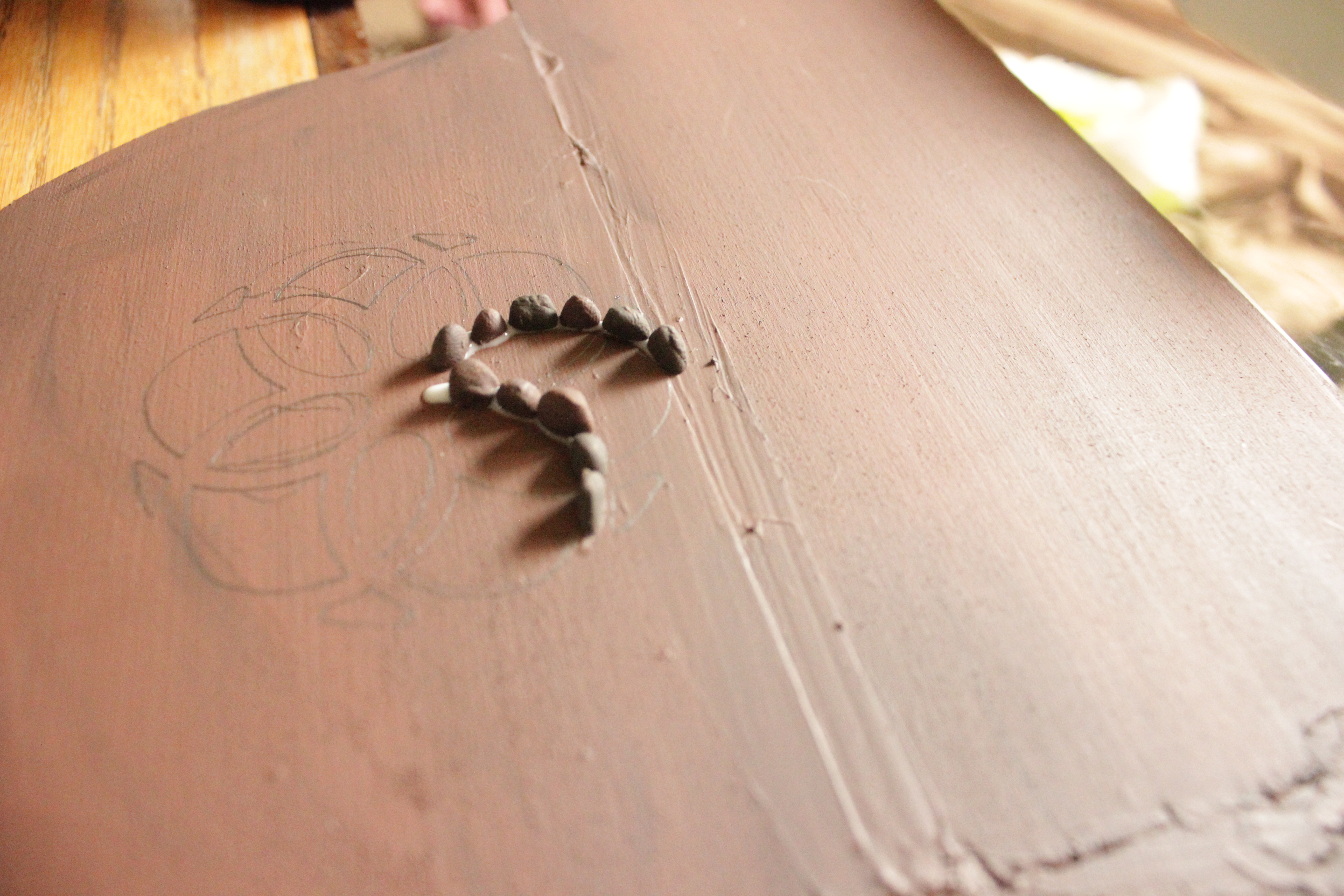 5) Paint your board. I chose brown because that would be the color of the sand and dirt below the “rocks” if this were a real path. Then draw your design on with a pencil, or white colored pencil.